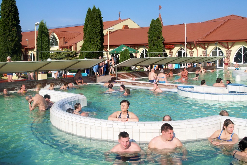 2. den, VEĽKÝ MEDER – termální prameny vyvěrají z hloubky 1500 m o teplotě až 76,5ºC. Příznivě působí na kloubní poruchy, nemoci páteře, svalů a na celkovou regeneraci organismu. Moderní areál poskytuje služby ve svém krytém nebo kombinovaném bazénu s teplotou vody 32 až 37ºC. K dispozici rodinný zábavní bazén s atraktivní Vodní věží. Do krytého plaveckého bazénu jsou nutné koupací čepice. Bazény můžete využívat až do 20:00 hodin.